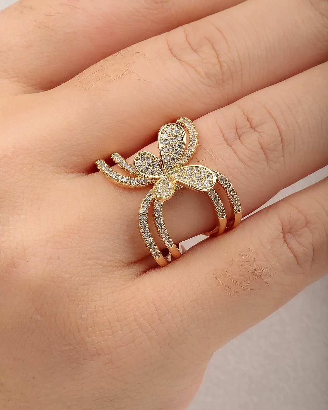 Anel Fairy com Detalhe Borboleta Cravejada Banhado em Ouro 18K (2) – Ajustável