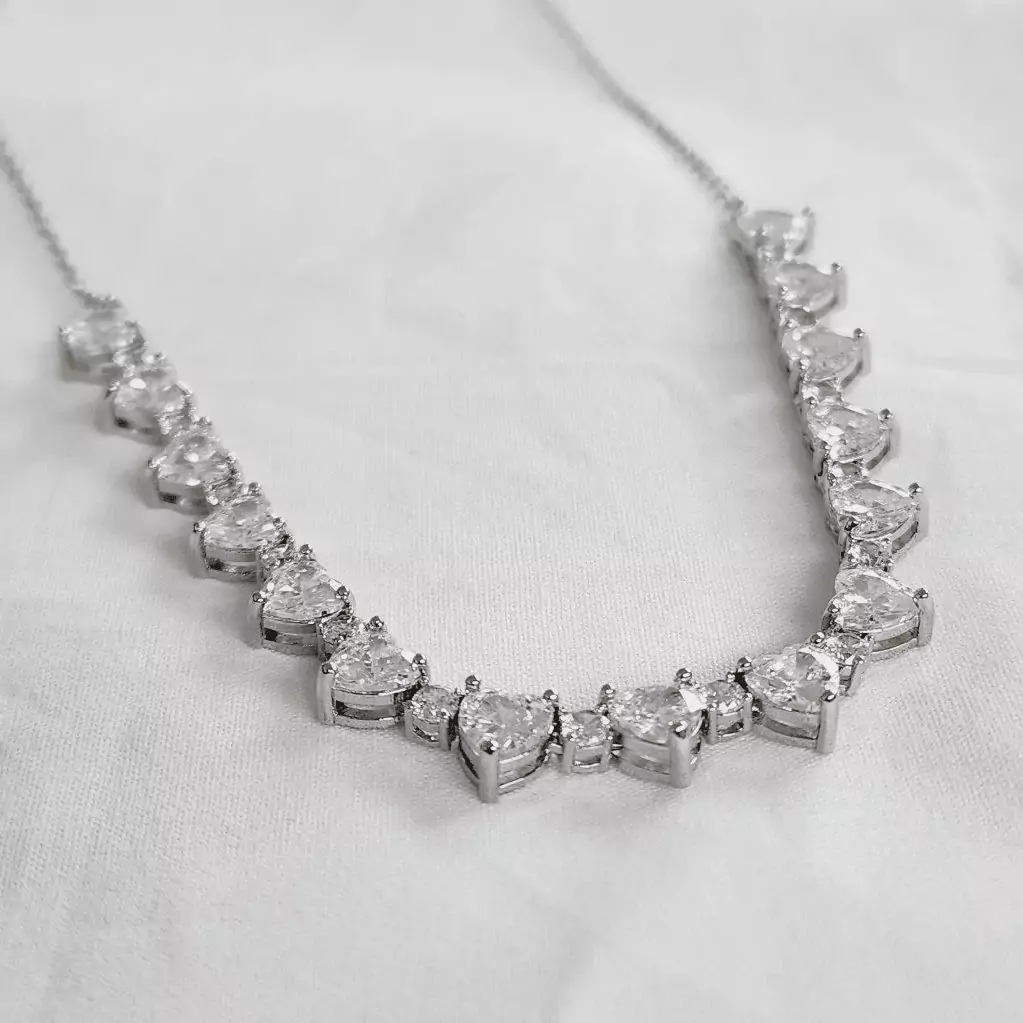 Colar Riviera Crystal Hearts Zircônia Cristal Banhado em Ródio Branco